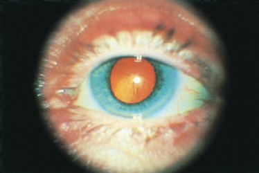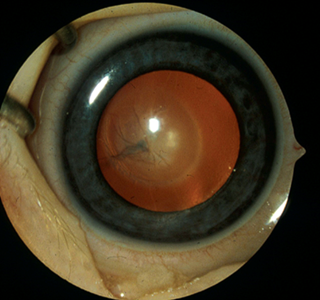 • Anomali okuler: Persistent fetal vasculature (PFV), posterior lenticonus atau lentiglobus, tumor segmen posterior, retinal detachment (terlepasnya retina), coloboma, uveitis