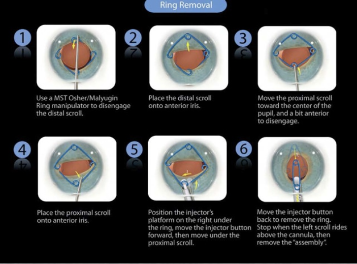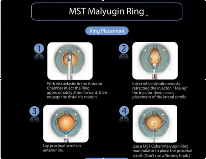 Berikut adalah langkah-langkah pemasangan cincin Malyugin pada operasi katarak: