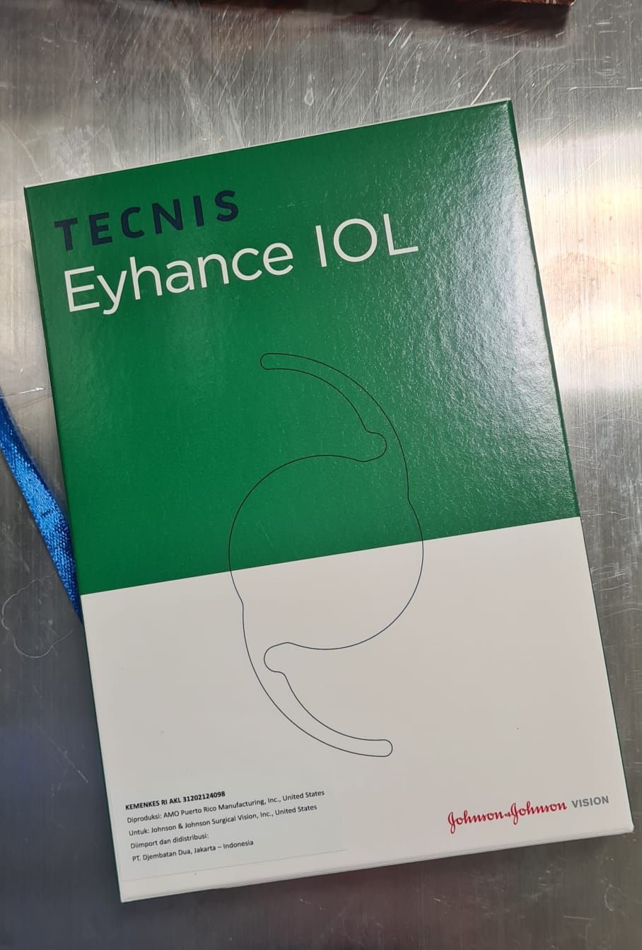 Tecnis eyhance IOL (lensa intraokular), model ICB00 merupakan lensa intraokular (LIO) yang dapat menyerap sinar ultraviolet, menghasilkan penglihatan jarak jauh dan profil disfotopsia yang sebanding dengan LIO monofokal asferik. Lensa Model ICB00 ini memiliki keunggulan permukaan anterior termodifikasi yang didesain untuk menambah kedalaman fokus, yang meningkatkan penglihatan jarak menengah jika dibandingkan dengan LIO monofokal asferik standar. Tepi optik posteriornya berbentuk kotak, memberikan perlindungan 360 derajat. Tepi optik tersebut didesain buram untuk mengurangi potensi terjadinya efek silau dari tepi lensa.