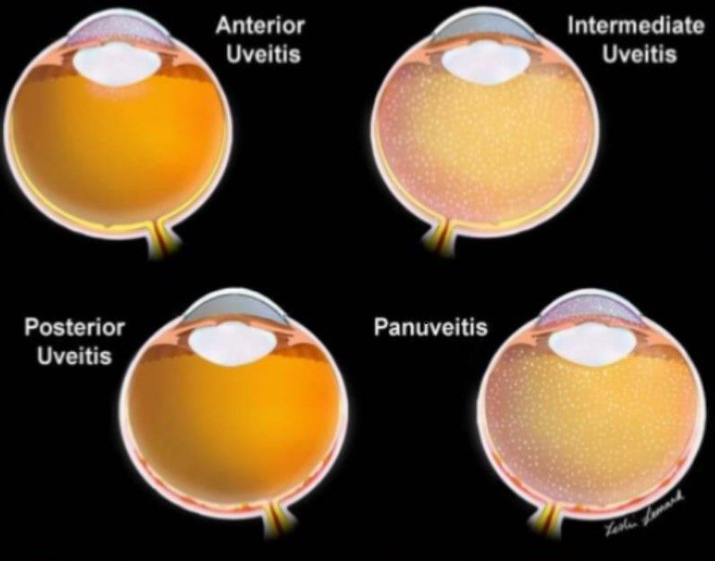 Berdasarkan lokasi pada mata, maka uveitis dibagi menjadi tiga, yaitu: